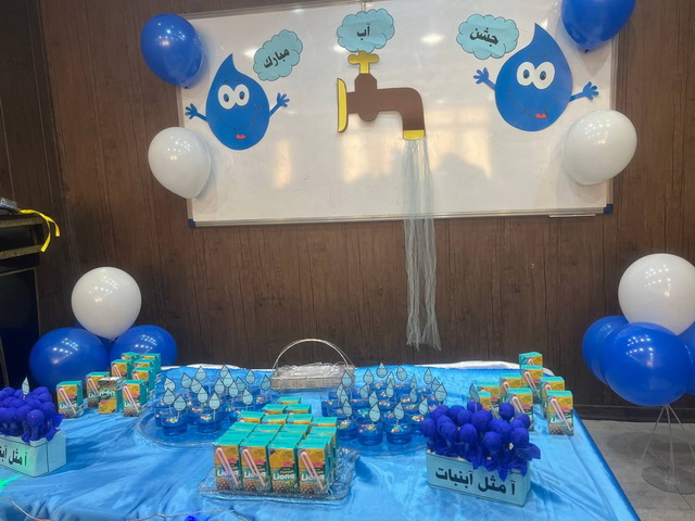 هرسال به شکرانه ی یادگیری اولین کلمه فارسی"آب" جشنی برای دانش آموزان کلاس اول برگزار می شود وضمن ایجاد شور و شادی راجع به آب، این نعمت بی نظیر الهی، فواید ونقش آن در زندگی موجودات کره ی زمین صحبت شده و خداوند را به خاطر وجود آن سپاس می گوییم.